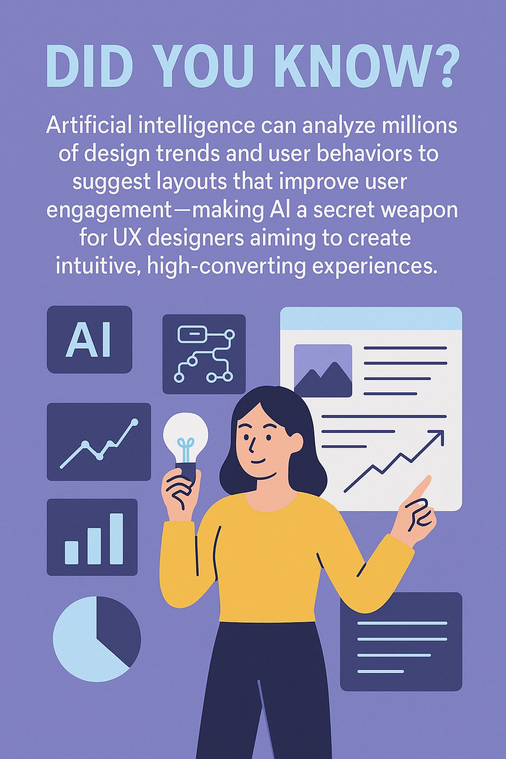 Did You Know? Artificial Intelligence can analyze millions of design trends and user behaviors to suggest layouts that improve user engagement—making AI a secret weapon for UX designers aiming to create intuitive, high-converting experiences.